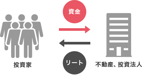 リート(REIT)とは、投資家から集めた資金でオフィスビル、商業施設、マンション、倉庫などの不動産を取得し、そこから得られる賃料や不動産売却益等を投資家に分配する仕組みの投資信託です。