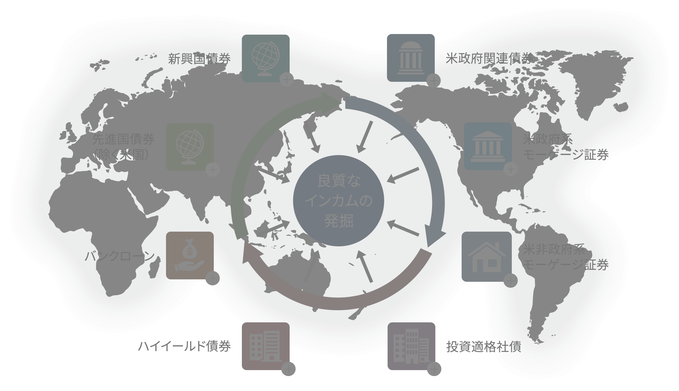世界中の多様な債券セクターに散在する、